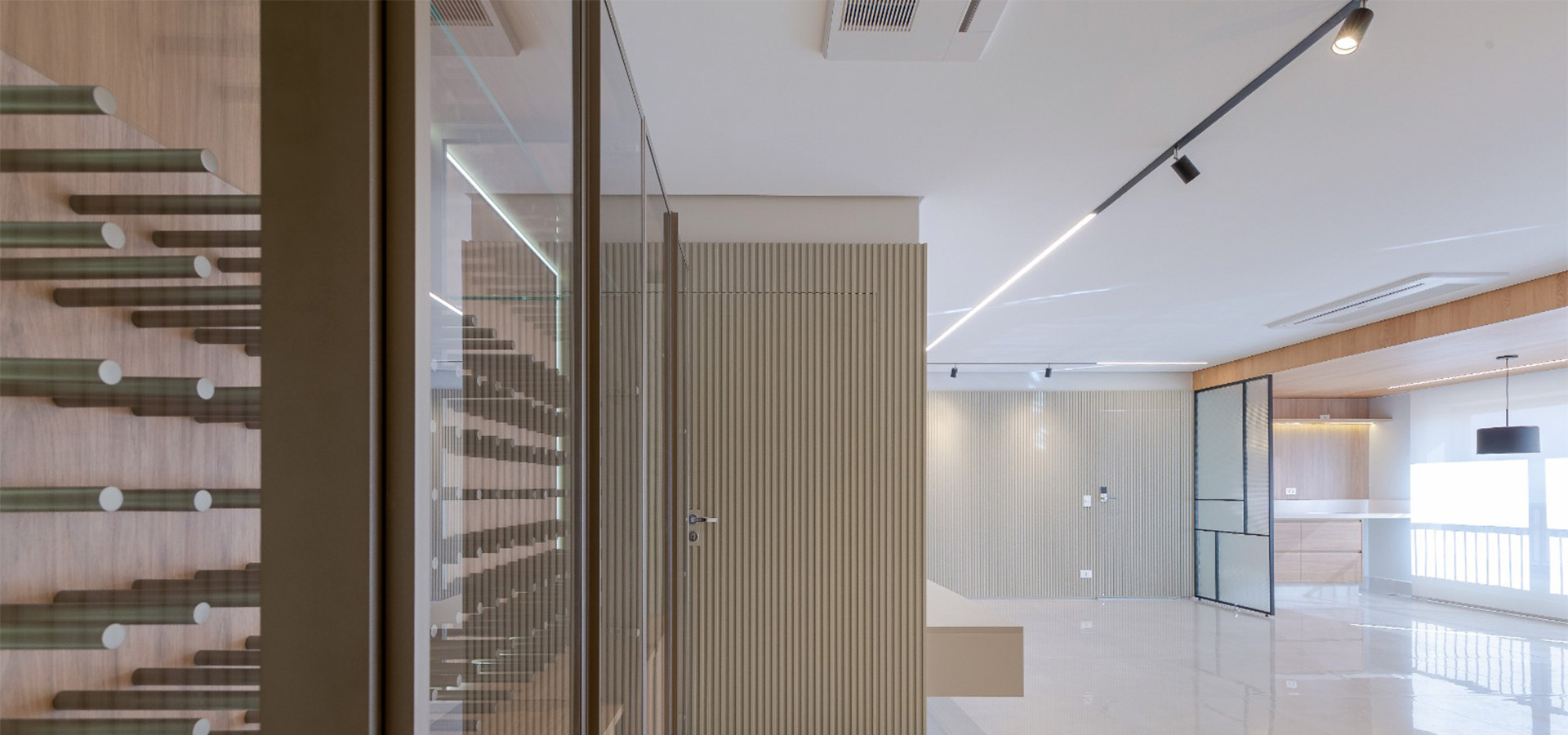 Temos um portfólio grande de produtos com os mais variados modelos e aplicações. Em termos de serviço e suporte aos arquitetos e designers de interiores, também auxiliamos em projetos luminotécnicos.